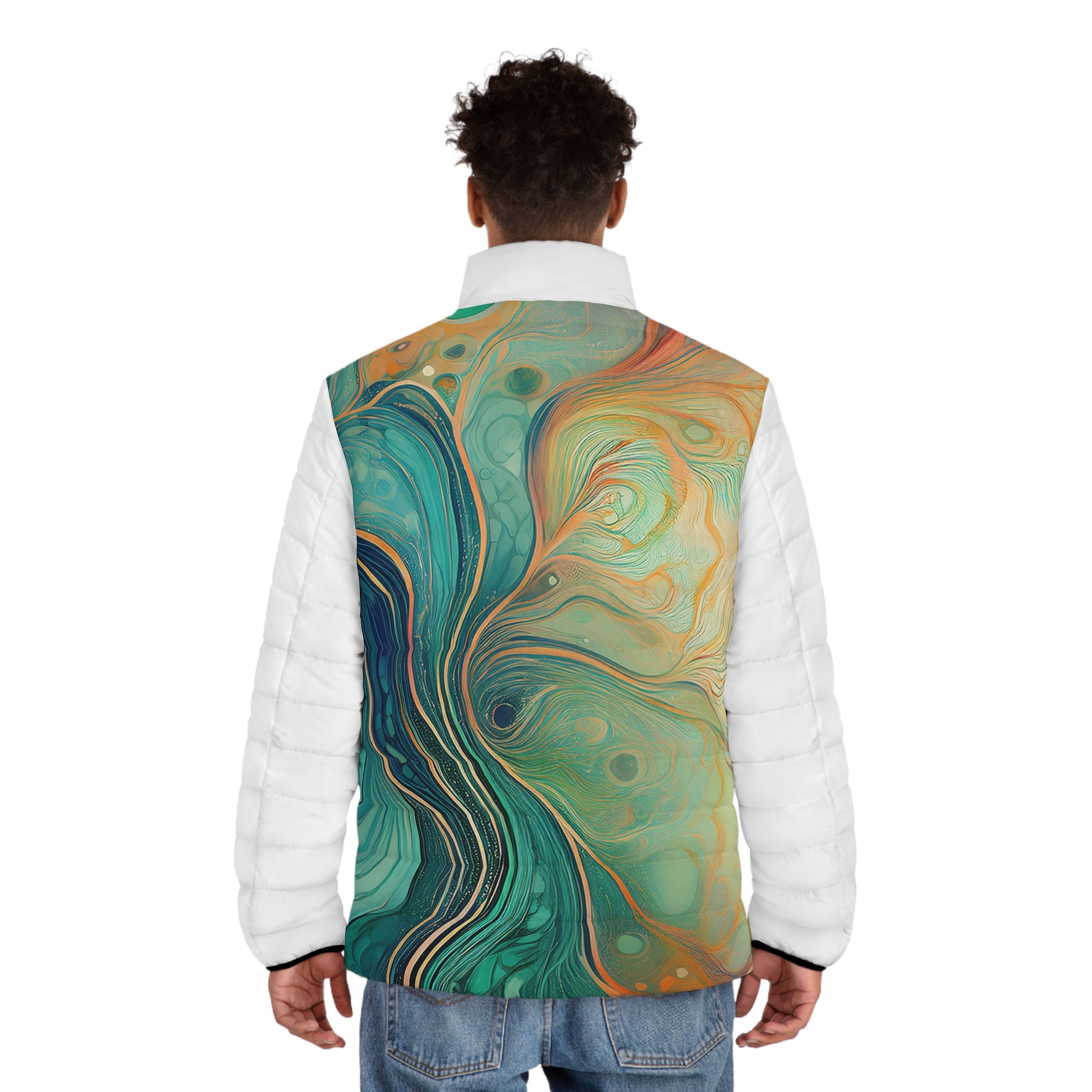 Stay warm and stylish in this vibrant Men's Puffer Jacket. Featuring a stunning artistically designed outer layer, this jacket is a perfect blend of comfort and flair. It radiates a sense of individuality, making it a go-to choice for those who love to express themselves through fashion. Ideal for casual outings, outdoor adventures, or winter gatherings, this jacket is versatile enough to complement any wardrobe. Perfect for the modern man who values both style and practicality, it's an excellent gift for birthdays, holidays, or special occasions like Valentine's Day and Father's Day.