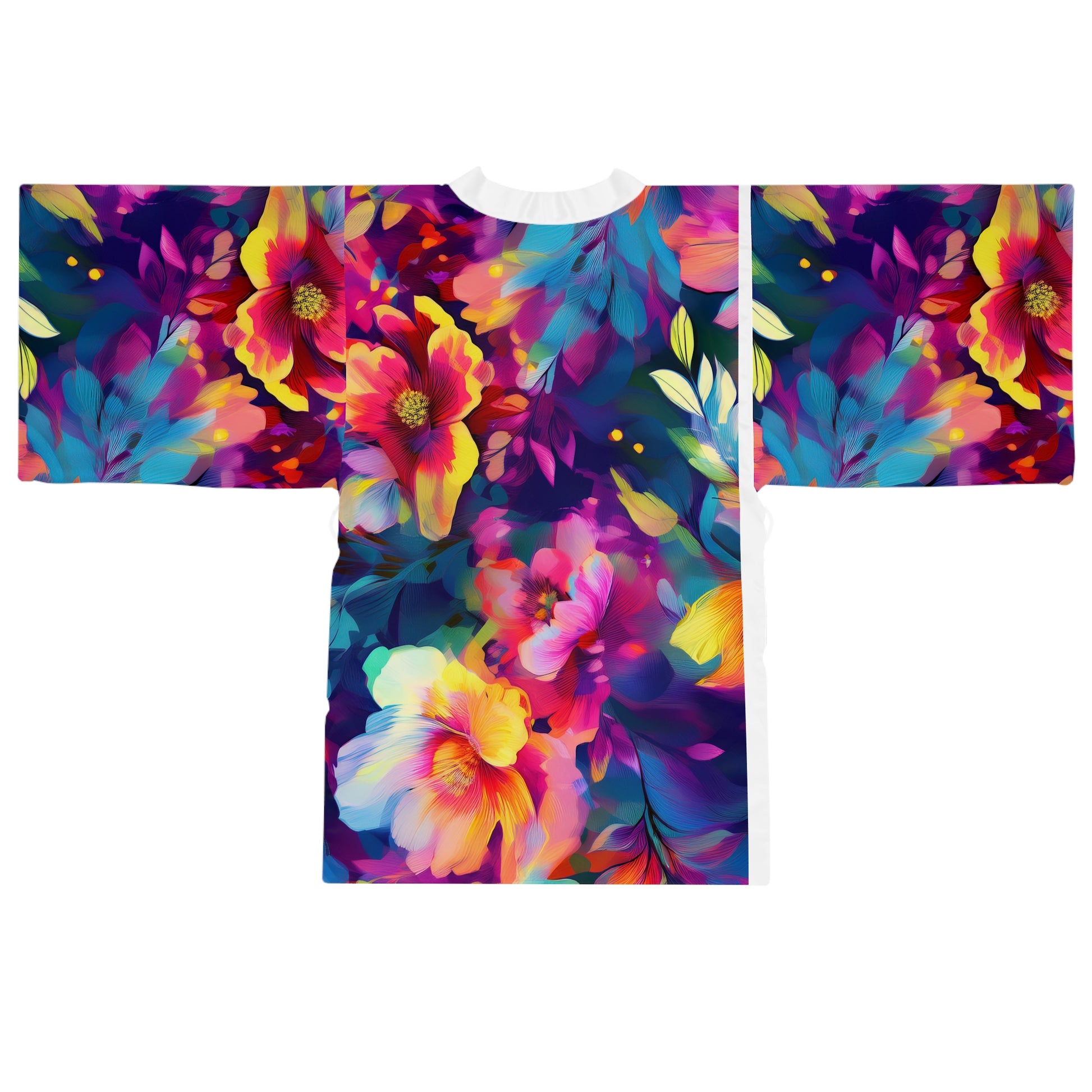Wrap yourself in effortless elegance with this stunning Long Sleeve Kimono Robe. Adorned with a vibrant floral print and finished with flowing bell sleeves, it’s a piece that blends comfort with statement-making style. Whether you’re unwinding at home, hosting a garden brunch, or heading to a casual soirée, this robe brings a sense of refined ease to any setting.